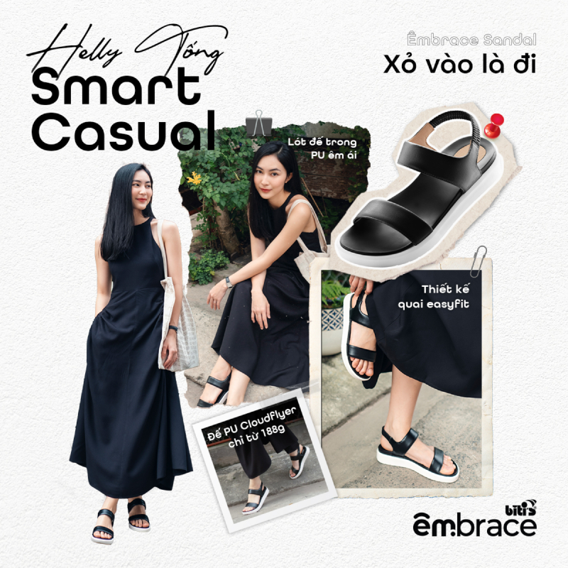 Lâu lâu muốn đổi gió thì bạn nên sử dụng đôi sandal đế cao gót của mình với chiếc váy suông. Đây là một cách phối giày đầy tính phong cách, nhưng không làm lu mờ đi nét dịu dàng vốn có của chị em. Đồng thời, phần đế giày của Biti’s được chế tác chỉn chu nên bảo đảm an toàn tối đa cho người dùng trong mọi bước đi, chẳng ngại trơn trượt, vướng víu.