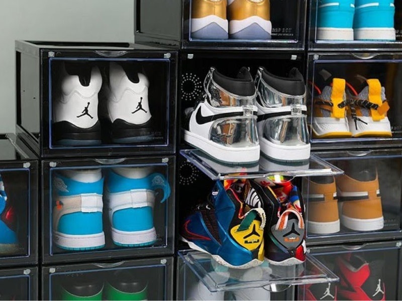 Trên thị trường, hiện có rất nhiều đơn vị cung cấp hộp đựng giày với đa dạng chất liệu như nhựa dẻo, nhựa cứng… Qua đó vừa giúp bảo vệ đôi giày khỏi bụi bẩn, vừa có tác dụng làm cho không gian sống của bạn trở nên gọn gàng hơn. Theo đó, các bạn có thể lựa chọn loại hộp theo kích thước size giày và ưu tiên kiểu hộp xếp chồng lên nhau để tiết kiệm tối đa diện tích. Đặc biệt, đừng quên cho vào bên trong hộp giày một vài tờ giấy hút ẩm, giấy thơm hoặc túi hút ẩm, nhằm hạn chế mùi ẩm mốc do môi trường gây ra sau một thời gian không dùng đến giày nhé.
