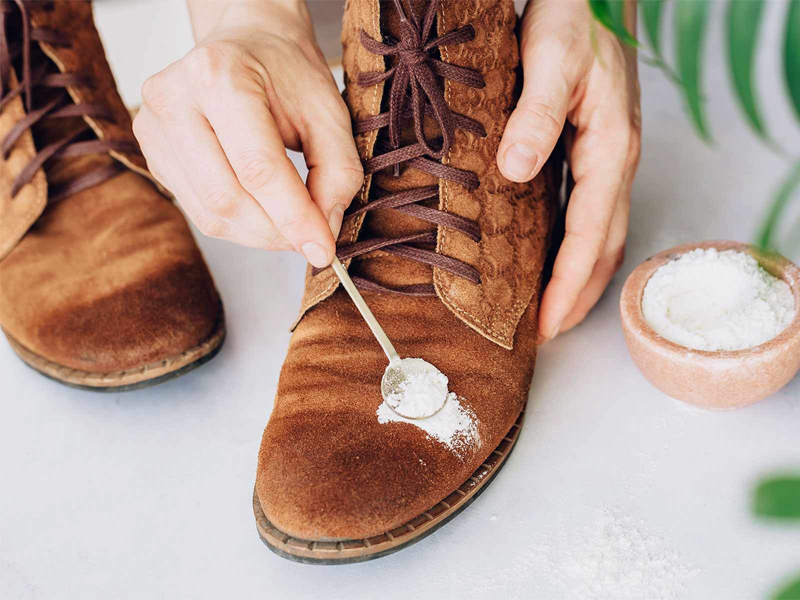 Phấn rôm sẽ giúp làm mềm đôi giày da lộn của bạn