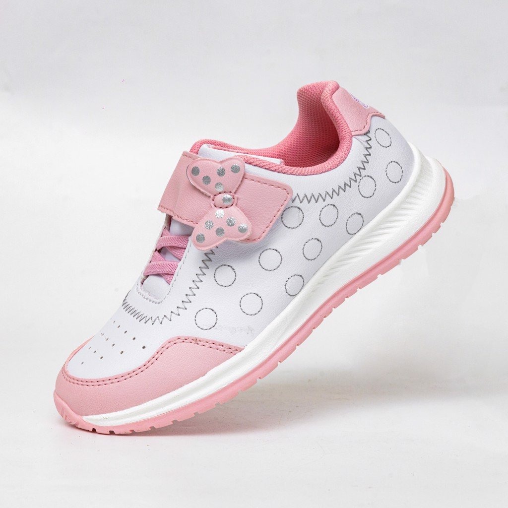Một đôi giày dành cho cô bé cá tính với công nghệ sản xuất hiện đại, đem tới sự êm ái, thoải mái nhất khi di chuyển. Đôi giày được thiết kế chủ yếu với hai màu hồng và trắng cuốn hút, bắt mắt và có nơ trang trí bên trên khiến bé gái nào cũng thích mê.