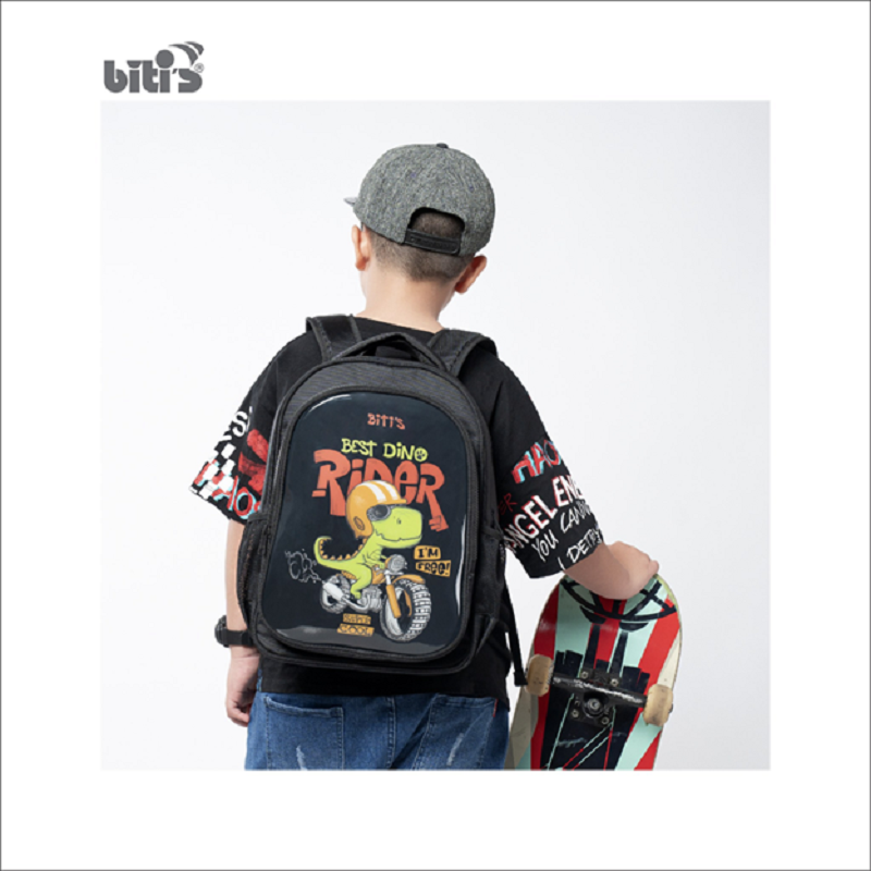 Theo đó, balo quai đeo BBBB00040 từ thương hiệu Biti’s sở hữu kiểu dáng nhỏ gọn kèm họa tiết khủng long siêu ngầu, giúp tôn lên vẻ đẹp năng động, cá tính cho các bé trai. Thêm nữa, chất liệu balo có khả năng chống nước, chống bụi nên rất dễ vệ sinh cùng 2 quai đeo êm mịn, thoáng khí, hạn chế đau mỏi hai vai khi mang nặng. Cuối cùng, không thể không kể đến ngăn chứa rộng rãi, tạo điều kiện cho bé yêu thỏa thích đựng mọi đồ dùng học tập cần thiết.