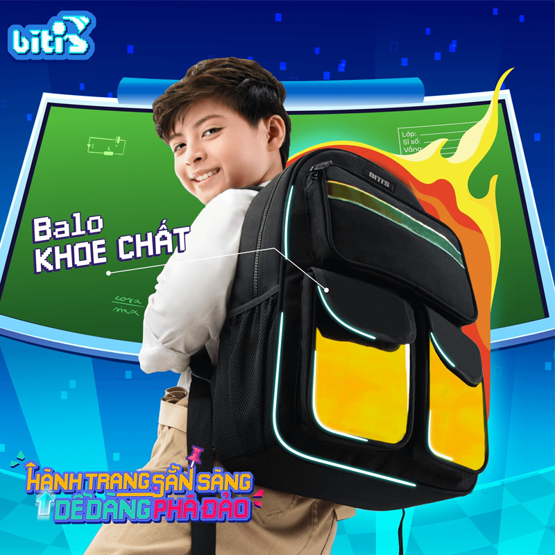 Những mẫu balo khiến bé trai thích mê có thể nhắc đến là balo Biti's BBBB00050 mẫu balo lấy chủ đề thế giới trò chơi điện tử độc đáo, sản phẩm gây ấn tượng cùng với họa tiết sinh động bắt mắt. Với tone màu đen chủ đạo phối cùng các màu sắc xanh, vàng, cam tạo sự nổi bật mang lại cá tính, khỏe khoắn cho bé trai.