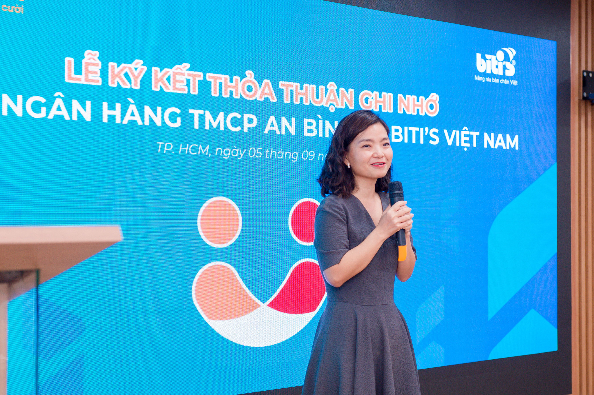 Đánh giá về cơ hội hợp tác cùng ABBANK lần này, bà Vưu Lệ Quyên - CEO Biti’s cũng nhận định: “Sứ mệnh của Biti’s là cùng nhau xây dựng cộng đồng làm việc, học tập hạnh phúc và hiệu quả. Cộng đồng hiểu rộng ra bao gồm cả công nhân viên, khách hàng, đối tác và toàn xã hội”. Việc hợp tác cùng ABBANK không những giúp hai doanh nghiệp khai thác tối đa tiềm năng của nhau, mà còn là cơ hội để Biti’s lan tỏa mạnh mẽ sứ mệnh về tinh thần phục vụ, nâng niu trải nghiệm hạnh phúc, tiện lợi của khách hàng.