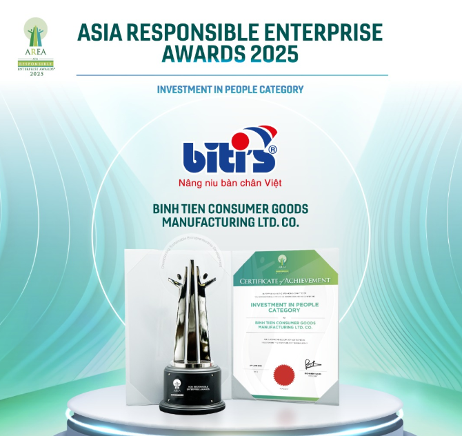 Trên hành trình đó, giải thưởng AREA 2025 đã trở thành dấu mốc quan trọng, ghi nhận những nỗ lực không ngừng của Biti’s trong việc phát triển con người song song với tăng trưởng doanh nghiệp. Đây đồng thời là nguồn cảm hứng để Biti’s tiếp tục mở rộng các hoạt động, dự án xã hội ý nghĩa hướng đến cộng đồng - tiêu biểu như:
