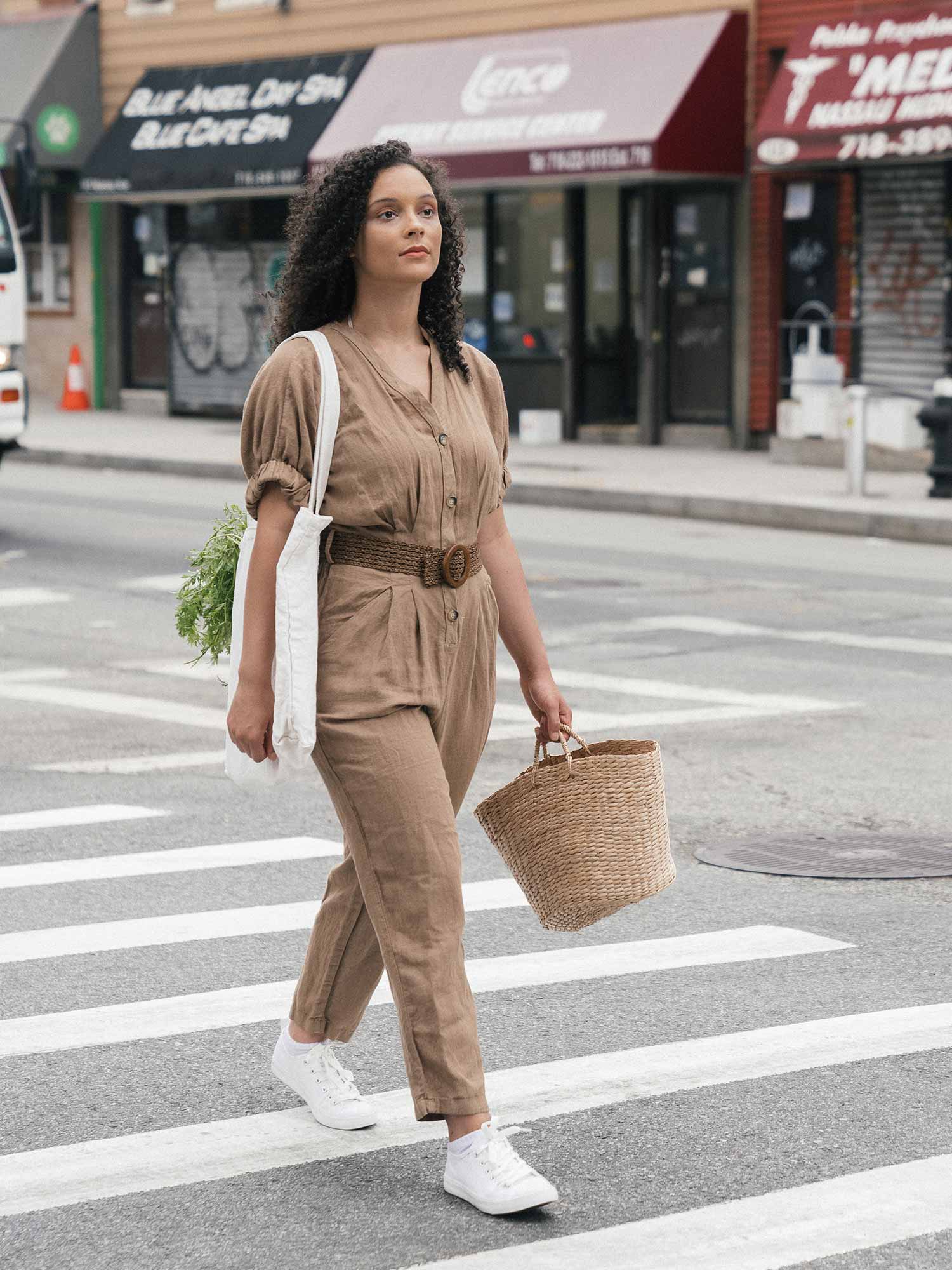 Một kiểu trang phục có phong cách năng động, thoải mái như jumpsuit thì mix cùng một đôi giày trắng sẽ là một sự lựa chọn tuyệt vời. Bạn không cần quá nhiều phụ kiện phức tạp, chỉ với một bộ jumpsuit và đôi giày trắng là đã làm bạn nổi bật giữa đám đông rồi.