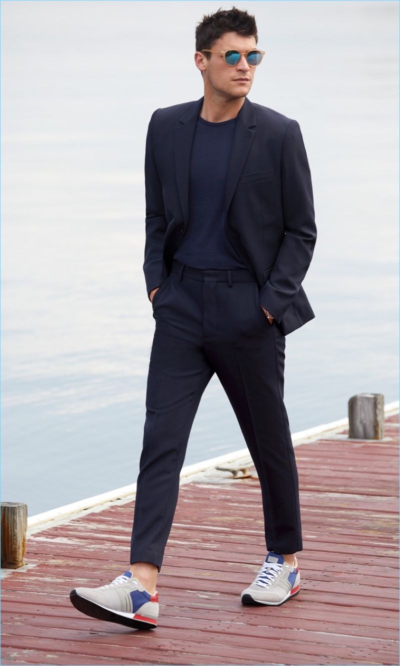 Mix trang phục và giày thể thao theo cách này sẽ mang đến cho bạn hình tượng vừa nghiêm túc, sang trọng lại pha trộn một ít các tính, mới mẻ. Xu hướng phối đồi này ngày càng được ưa chuộng đối với phái nam trong đời sống hằng ngày.